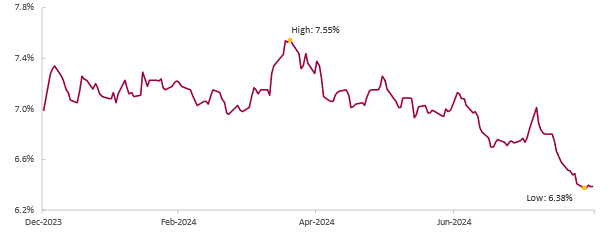 A sharp decline in risk assets at the start of August was met with a strong risk-taking impulse that saw the high yield market put up one of its best months of 2024. Market returns were driven by a combination of positive carry, narrowing spreads and lower base government bond yields. The market did not make new lows for the year in spreads, and we believe that a traditionally very quiet second half of the month contributed significantly to the rally.