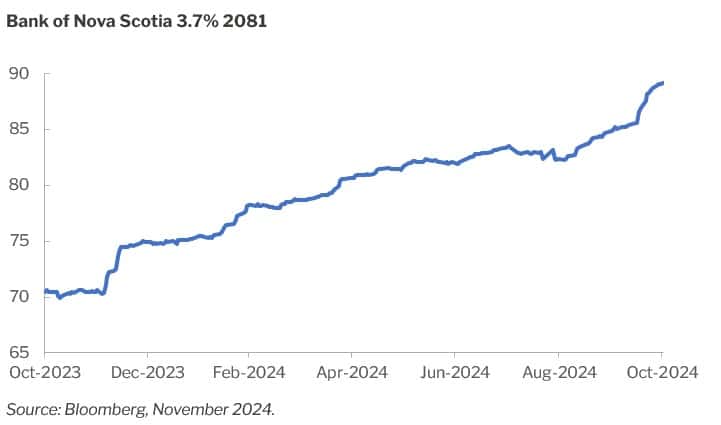 - Selling activity included positions in Canadian bank low reset Limited Recourse Capital Notes (“LRCNs”) issued in Canadian dollars in 2021 which we had accumulated in 2023 at $75 and below. In October, we sold out of the bulk of our holdings at a profit.