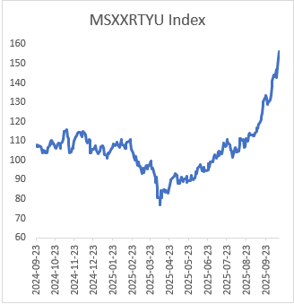 One of the primary drivers of market sentiment in recent weeks has been the announcements of large data center and chip transactions relating to the build out of AI in the coming years. Several of these transactions have been circular in nature. While we have seen several news articles suggesting that circular financing raises investor concerns, the market response has been optimistic with several large rallies in the equities of companies announcing transactions.