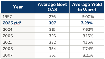 Source: ICE BofA US High Yield Index Spread, as of Oct 6, 2025