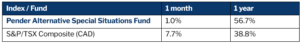 1 All Pender performance data points are for Class F of the Fund. Other classes are available. Fees and performance may differ in those other classes. Standard performance information for the Fund can be found here: penderfund.com/fund/pender-alternative-special-situations-fund/