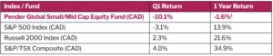 1 All Pender performance data points are for Class F of the Fund. Other classes are available. Fees and performance may differ in those other classes. Standard Performance Information for the Fund may be found here: https://penderfund.com/fund/pender-global-small-mid-cap-equity-fund/