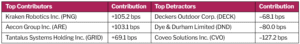 Kraken Robotics was a big contributor in the month on sustained defense spending momentum. The stock also benefited from investor speculation about a potential takeout following Anduril’s acquisition of one of its long-time suppliers, as well as rising retail interest driven by increased visibility on social media platforms such as X and YouTube.