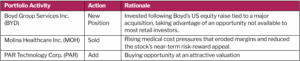 We initiated a new position in Boyd Group Services in the month following the company’s announcement of the US$1.3 billion acquisition of Joe Hudson’s Collision Center, a 258-location multi-shop operator with a strong market presence across southeast America. To support the transaction, Boyd completed a US$897 million bought-deal US IPO, issuing 6.36 million shares at US$141/sh. The acquisition was struck at an attractive 9.3× EBITDA multiple post-synergies and is expected to be immediately accretive providing an attractive investment opportunity.