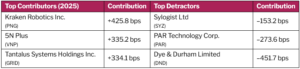 On the detractor side, Sylogist, PAR , and Dye & Durham weighed on performance during the year, primarily due to company-specific execution challenges and elevated near-term investor uncertainty, rather than a deterioration in long-term fundamentals.