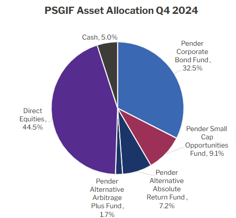 Small Caps (PSCOF, 9.1% of Fund): The Pender Small Cap Opportunities Fund gained 15.2% in the quarter, capping strong performance of 58.8%[3] in 2024 as a whole. Performance in the quarter was broad-based, demonstrated by eight holdings in the portfolio contributing more than 100bps each to performance in the quarter. Over the long term with annualized returns in the high-teens, PSCOF has been a significant performance generator for PSGIF. It has been a unique differentiator in a balanced category where equity allocations tend to be mostly unbalanced into the same large cap index stocks. For further details, see the Q4 update.