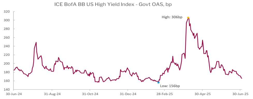 Au cours de la dernière année, les écarts BB ont atteint en avril un sommet à peine plus élevé que la médiane sur 10 ans de 277 pb des écarts de rémunération corrigés des effets de la clause de remboursement anticipé (OAS) des titres d’État, et ils sont demeurés inférieurs à la moyenne sur 20 ans de 348 pb.