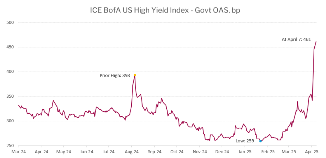 Après deux jours de faiblesse, mais d’ordre, suivant l’annonce par Trump de tarifs douaniers, les ventes forcées se sont multipliées dans la deuxième semaine d’avril. Un marché désordonné, où les acheteurs imposent les prix, est un terreau fertile pour de bons rendements prévisionnels. Bien que l’ajustement des prix ne soit pas terminé, le marché est le plus faible que nous ayons vu depuis octobre 2023.