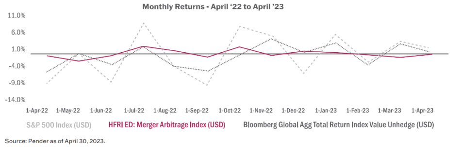 Il s’agit d’une stratégie de placement conçu pour tirer parti de la résolution positive d’ententes de fusion et d’acquisition (F&A) lorsque celles-ci sont annoncées. L’objectif est donc de profiter des inefficacités de prix causées par un événement, comme l’acquisition d’une entreprise par une autre, et de recueillir le surplus (écart) entre le cours actuel de l’entreprise et le prix ciblé au moment où l’entente sera conclue.